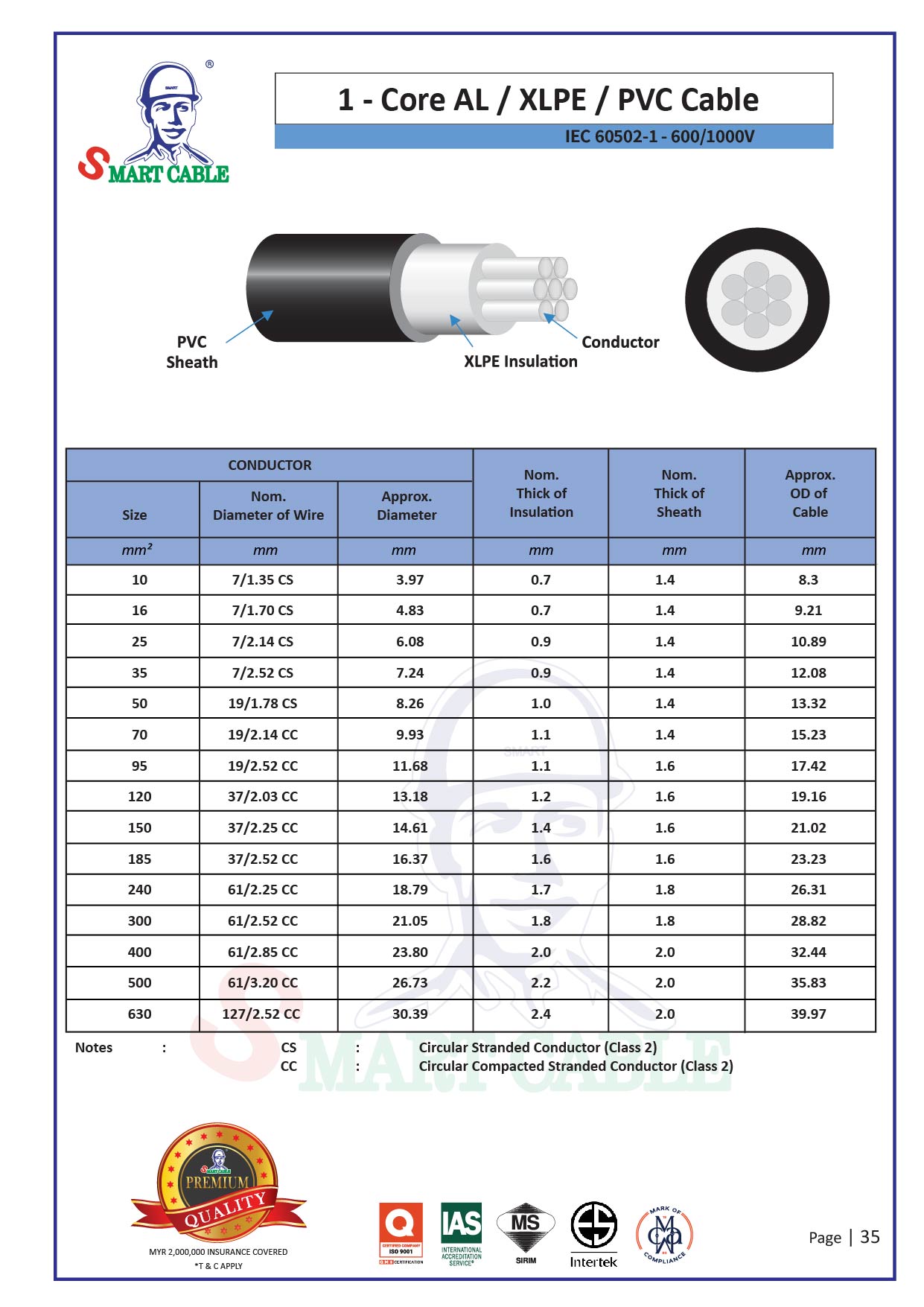 1-Core AL/XLPE/PVC Cable